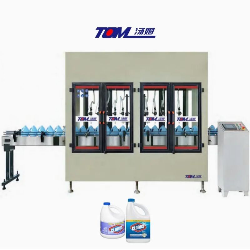 Cette ligne est adaptée au remplissage de produits de blanchiment avec des spécifications de500 ml à 3000 ml